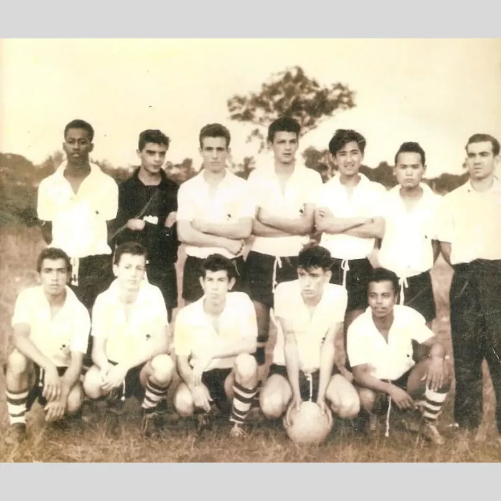 Imagem icônica do E.C Falcāo do Morro Itaquerense de 1961 enviada pelo historiador Marcos Falcon, que enfatiza os atletas de descendência oriental. “Os ‘japas’ historicamente sempre marcaram presença nos elencos do Falcāo do Morro”, comenta ele com muito carinho.