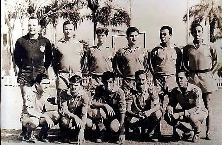 O primeiro em pé é o Dirceu Gardel (que gostava de cantar os tangos de Carlos Gardel), Eugênio , Olavinho, craque não identificado, craque nāo identificado , Mané e o lendário técnico Seu Lima.