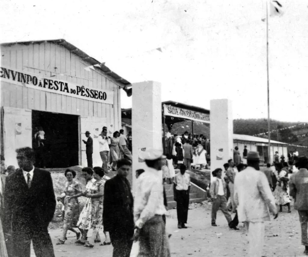 Neste histórico registro – da década de 50 -está o Pavilhão da Festa do Pêssego, que ficava em um terreno ao lado da atual sede do Itaquera Nikkei Clube.