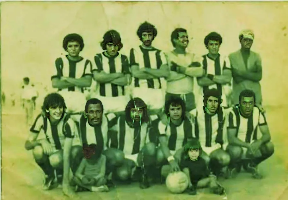 Imagem histórica com o eterno Mestre Cobrinha , lenda viva do alvinegro de Vila Corberi. Detalhe interessante sāo as “madeixas” dos “cabeludos” jogadores. Cabelos longos eram moda na época.