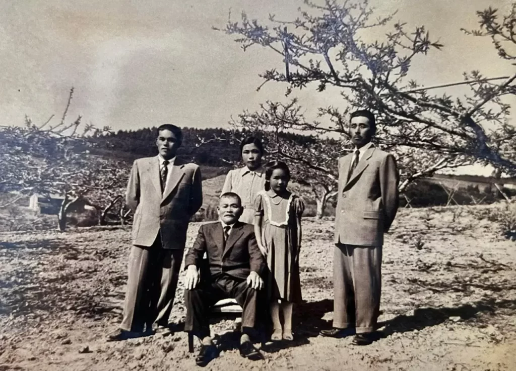 Na fotografia que traz muita história estāo membros da Família Inoue’: o patriarca Nakasuke Inoue (sentado), com os filhos Hideo (a esquerda), Mineo (a direita) e Mineko e sua filha Clara (no centro).