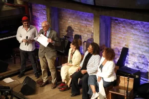 Com: Lenise Pinheiro, Claudio Leal, Camila Mota, Marcelo Drummond e a presidenta da Funarte, Maria Marighella