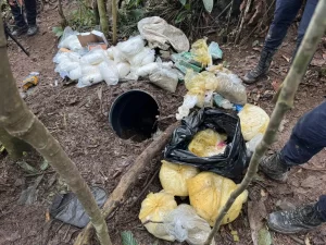 Outro ponto que chamou a atenção dos agentes foi a presença de tonéis enterrados, usados para esconder matéria-prima destinada à produção de cocaína e crack. A estratégia evidenciava a tentativa de camuflar a atividade ilegal e dificultar a localização do material pelas forças de segurança.