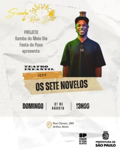 No próximo domingo, dia 31 de agosto de 2025, a Rua Clarear, 289, no Jardim São Carlos, em Arthur Alvim, Zona Leste de São Paulo, será palco de mais uma edição do Samba do Meio Dia – Festa do Povo. Das 12h às 16h, moradores e visitantes poderão desfrutar de uma programação gratuita que une música, teatro, feira de artesanato e espaço para toda a família.